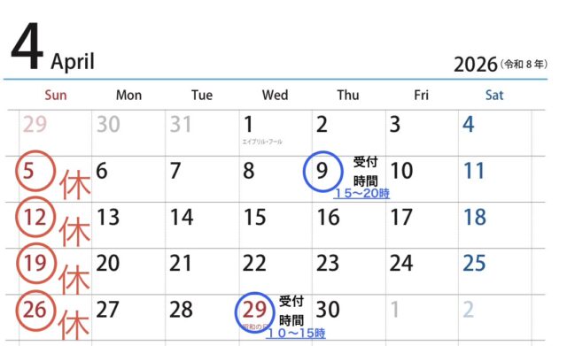 また、4月29日(祝・水)は、特別診療日にいたします。